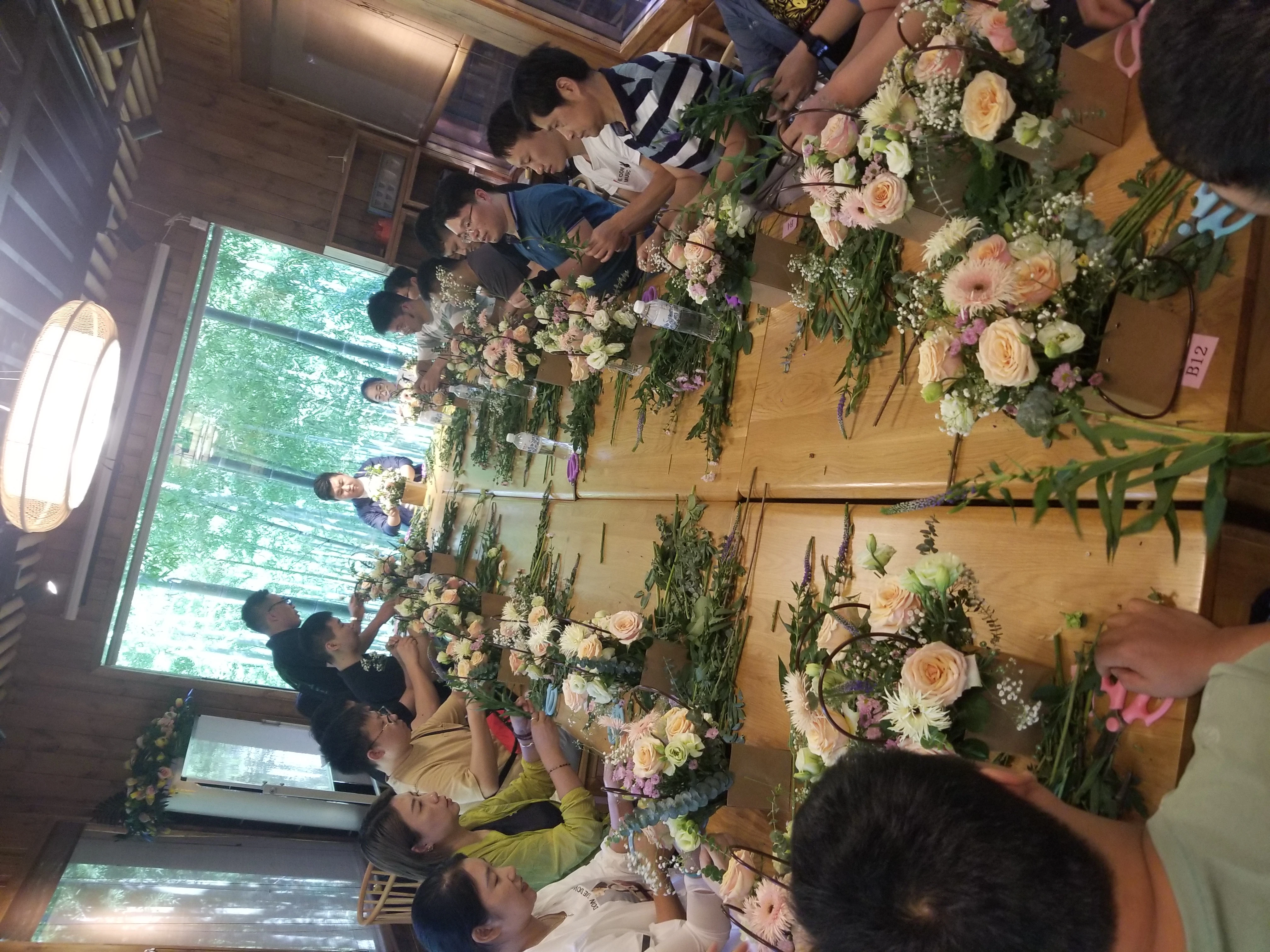 六月的暖风,吹醒了沉睡的花蕾,吹开了花儿无数。玫瑰、雏菊、满天星们,都在跃跃欲试,想要展现自己的美丽。在插花老师的带领下,大家用自己的双手,将它们的美丽重新组合,编织在了一起。满屋芬芳,争奇斗艳。